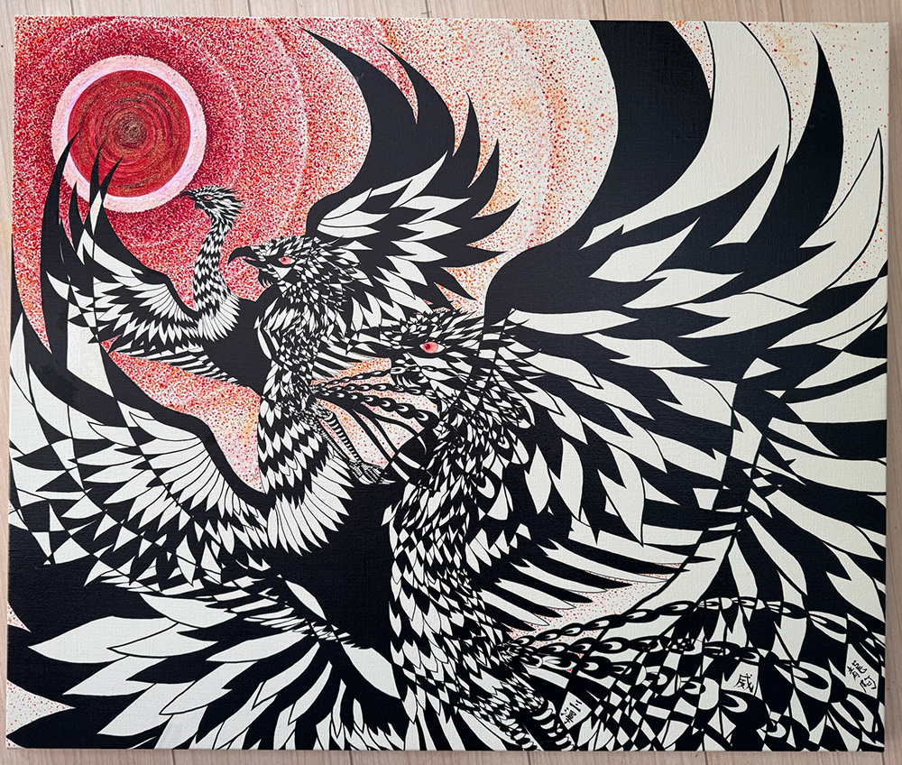 さらに、芸能人や文化人による新作として、人気アイドルグループSKE48チームSの北川愛乃さんの油絵「水平線」、ダンスボーカルユニットEXILEのメインボーカルとして活躍中のTAKAHIROさんによる、作家・北方謙三さんの歴史小説の題字を手掛けたことから着想を得た「森羅記」、タレント・キンタロー。さんの油絵「ある日の束の間」なども出品します。