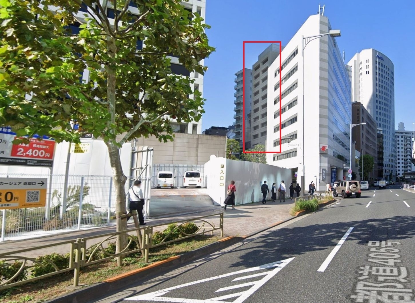 赤坂見附駅(B2出口)から徒歩2分※B2出口からオリエント赤坂モートサイドビル(写真の赤枠のビル)が見えます。
