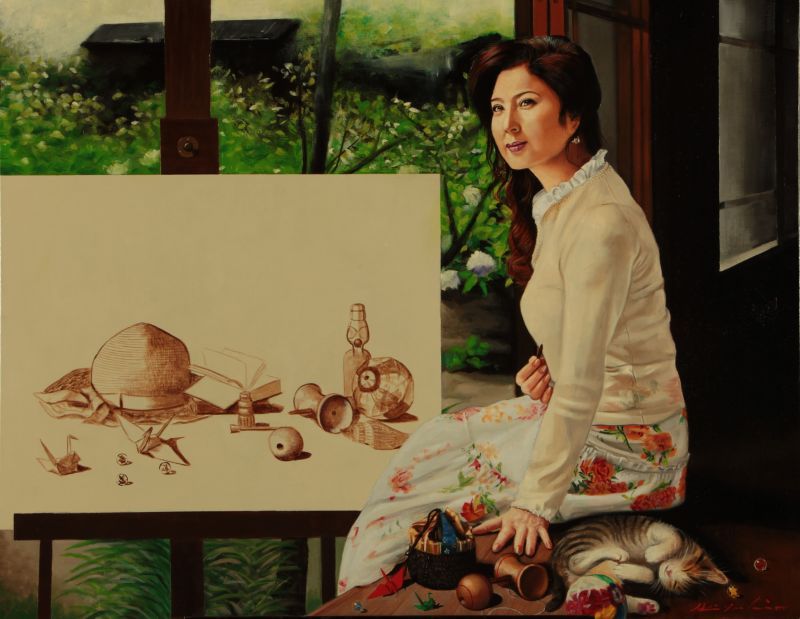さらに、芸能人や文化人による新作として、人気アイドルグループSKE48チームSの北川愛乃さんの油絵「水平線」、ダンスボーカルユニットEXILEのメインボーカルとして活躍中のTAKAHIROさんによる、作家・北方謙三さんの歴史小説の題字を手掛けたことから着想を得た「森羅記」、タレント・キンタロー。さんの油絵「ある日の束の間」なども出品します。